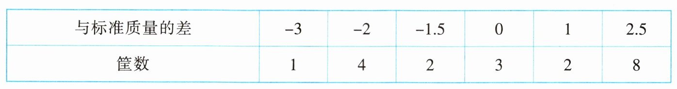 (1)5.5. (2)$1×(-3)+4×(-2)+2×(-1.5)+3×0+2×1+8×2.5=8$(kg),即超过8 kg. (3)$(20×25+8)×2.6=1320.8$(元).