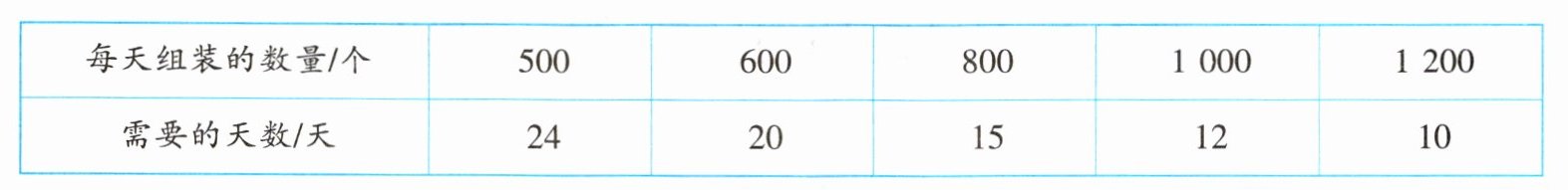 4. 一个玩具组装车间要完成一项任务,每天组装玩具的数量与需要的天数如下表.