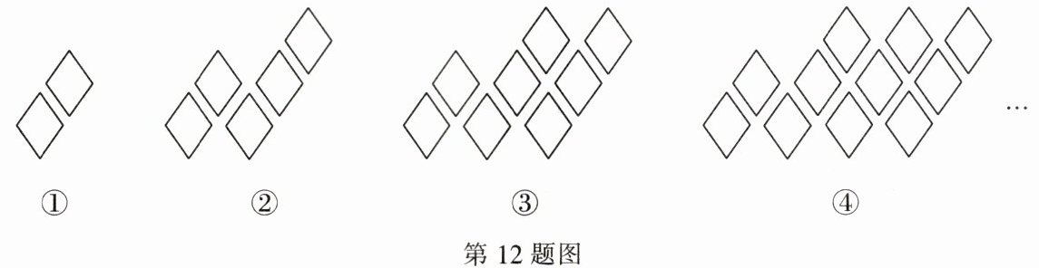 12. (2024·重庆)用菱形按如图所示的规律拼图案,其中第①个图案中有 $ 2 $ 个菱形,第②个图案中有 $ 5 $ 个菱形,第③个图案中有 $ 8 $ 个菱形,第④个图案中有 $ 11 $ 个菱形,…,按此规律,则第⑧个图案中,菱形的个数是(