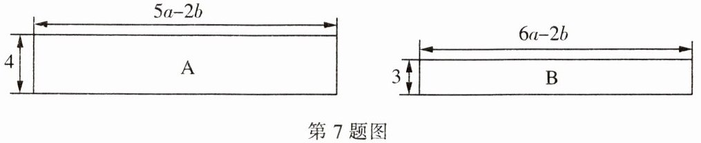 7. 如图,若 $a - b = 4$,则长方形 $A$ 与 $B$ 的面积差为