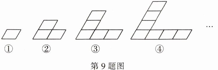 9. 如图,第 1 个图形中一共有 1 个小平行四边形,第 2 个图形中一共有 3 个小平行四边形,第 3 个图形中一共有 5 个小平行四边形,…