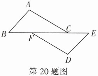 20. (9分) 如图,在$\triangle ABC和\triangle DEF$中,$\angle A = \angle D$,点$B$,$F$,$C$,$E$在同一直线上,有如下三个关系式:①$AB // DE$;②$BF = EC$;③$AC = DF$.