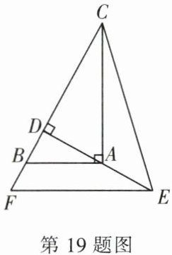 19. (8分) 在$Rt\triangle ABC$中,$\angle BAC = 90^{\circ}$,过点$A作AD \perp CB于点D$,延长$DA至点E$,使得$DE = AC$,过点$E作EF // AB$,交$CB的延长线于点F$,连接$CE$.