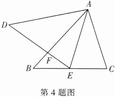 4. 如图,$\triangle ABC\cong\triangle ADE$,$AC和AE$,$AB和AD$是对应边,点$E在边BC$上,$AB与DE交于点F$.
