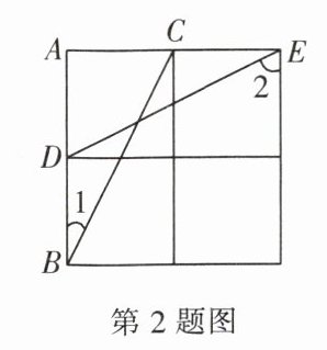 2. 如图,已知方格纸中是 4 个相同的小正方形,则∠1 + ∠2 的度数为( )