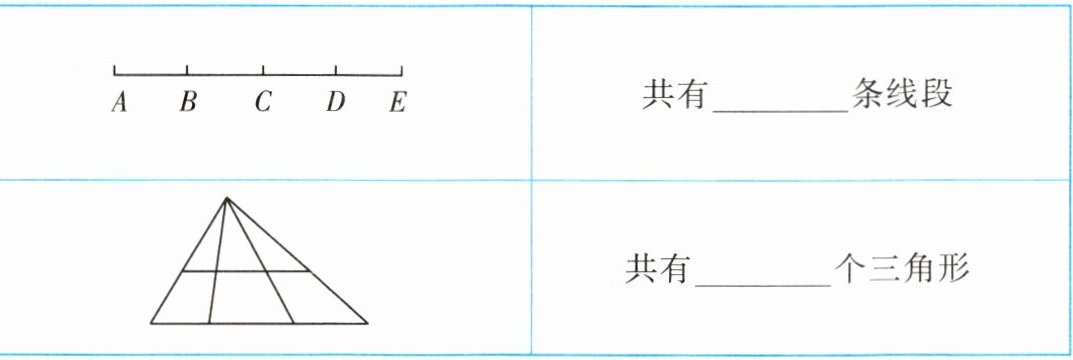 (4)当四个点在一条直线上时,则是一条线段,没有三角形.答:这个图形中会有8个或3个或4个或0个三角形.