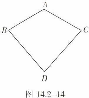 2. 如图 14.2 - 14,$ AB = AC $,$ BD = CD $,$ \angle BAC = 120^{\circ} $,$ \angle BDC = 80^{\circ} $,则 $ \angle B = $