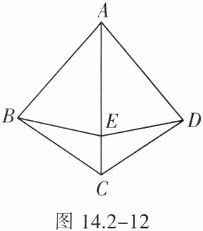 2. 如图 14.2 - 12,$ AB = AD $,$ BE = DE $,$ BC = DC $,则图中全等三角形有(