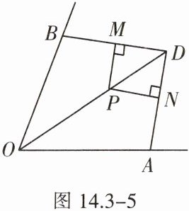 【例】如图 14.3 - 5 所示,$OD$ 平分 $\angle AOB$,$OA = OB$,$P$ 是 $OD$ 上一点,$PM \perp BD$ 于点 $M$,$PN \perp AD$ 于点 $N$. 求证:$PM = PN$.