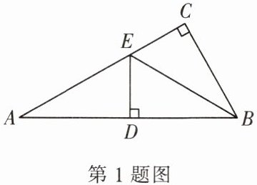 1. 如图,在 $\triangle ABC$ 中,$\angle ACB = 90^{\circ}$,$BE$ 平分 $\angle ABC$,$DE \perp AB$ 于点 $D$. 若 $AC = 5\ cm$,则 $AE + DE = $(