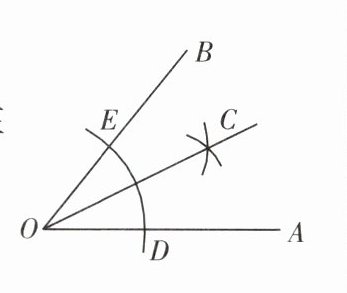作法:①在$OA和OB上分别截取OD$,$OE$,使$OD = OE$;