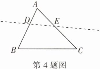 4. 如图,线段 AB 和线段 AC 是△ABC 的两条边,点 D 在线段 AB 上,点 E 在线段 AC 上,将△ABC 沿 DE 所在直线裁去一个角得到四边形 DBCE,则四边形 DBCE 的周长