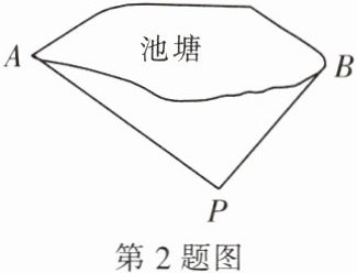 2. 为估计池塘两岸 A,B 间的距离,明明在池塘一侧选取了一点 P,测得 PA = 14 m,PB = 10 m,那么 AB 间的距离可能是(