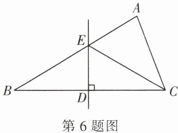 6. 如图,在△ABC 中,BC 边的垂直平分线交 BC 于点 D,交 AB 于点 E,若 CE 平分∠ACB,∠B = 40°,则∠A =