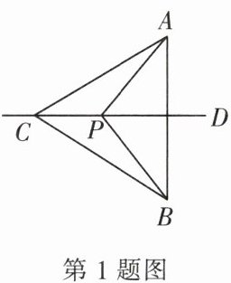 1. 如图,直线 CD 是线段 AB 的垂直平分线,P 为直线 CD 上一点,若线段 PA = 2,则线段 PB = (