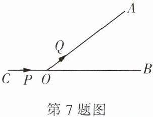 7. 如图,$\angle AOB = 60^{\circ}$,$C是BO$延长线上一点,$OC = 12\mathrm{cm}$,动点$P从点C出发沿CB以2\mathrm{cm/s}$的速度移动,动点$Q从点O出发沿OA以1\mathrm{cm/s}$的速度移动,如果点$P$,$Q$同时出发,用$t$($\mathrm{s}$)表示移动的时间,当$t = $