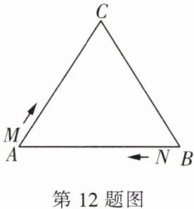 12. 如图,在△ABC 中,AB = BC = AC = 12 cm,现有两点 M,N 分别从点 A 、点 B 同时出发,沿三角形的边运动,已知点 M 的速度为 1 cm/s,点 N 的速度为 2 cm/s. 当点 N 第一次到达 B 点时,M,N 同时停止运动.