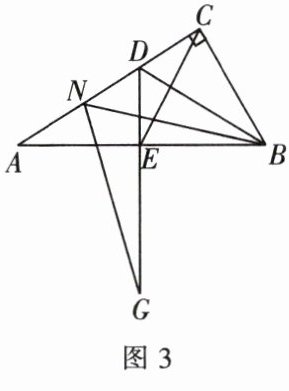 (3)结论:AD=DG - DN.理由:如图 3 所示,延长 BD 至点 H,使得 DH=DN.由(1)得 DA=DB,∠A=30°.