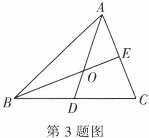 3. 如图,△ABC 的角平分线 AD,中线 BE 交于点 O,则结论:①AO 是△ABE 的角平分线;②BO 是△ABD 的中线. 其中(