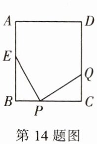 14. 如图,长方形$ABCD的边长AB = 20\mathrm{cm}$,$BC = 16\mathrm{cm}$,点$E在边AB$上,$AE = 6\mathrm{cm}$,如果点$P从点B$出发,在线段$BC上以2\mathrm{cm/s}的速度向点C$运动,同时,点$Q在线段CD上从点C向点D$运动,则当$\triangle BPE与\triangle CQP$全等时,时间$t$为