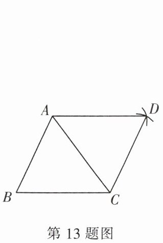 13. 如图,以$\triangle ABC的顶点A$为圆心,以$BC$长为半径作弧,再以顶点$C$为圆心,以$AB$长为半径作弧,两弧交于点$D$,连接$AD$,$CD$,若$\angle B = 56^{\circ}$,则$\angle ADC$的大小为