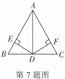 7. 如图,在$\triangle ABC$中,$D是BC$的中点,$DE \perp AB于点E$,$DF \perp AC于点F$,$BE = CF$,则图中全等三角形共有(