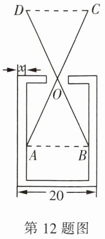 12. 如图,零件的外径为$20\mathrm{cm}$,设计一个类似钳子的工具$(OA = OC$,$OB = OD)$,量得$CD的长为16\mathrm{cm}$,则此零件的厚度$x = $