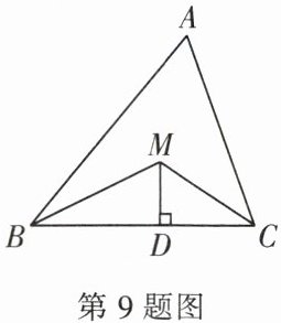 9. 如图,$\triangle ABC的周长是16$,$MB和MC分别平分\angle ABC和\angle ACB$,过点$M作BC的垂线交BC于点D$,$MD = 4$,则$\triangle ABC$的面积是(