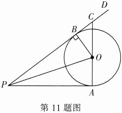 11. (2023·广西)如图,PO平分∠APD,PA与⊙O相切于点A,延长AO交PD于点C,过点O作OB⊥PD,垂足为B.
