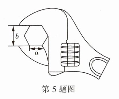 - 5. 如图,要拧开一个边长 $a = 18\mathrm{mm}$ 的六角形螺帽,扳手张开的开口 $b$ 至少要