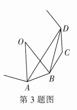 - 3. 如图,点 $A$,$B$,$C$,$D$ 为一个正多边形的顶点,点 $O$ 为这个正多边形的中心,若$\angle ADB = 18^{\circ}$,则这个正多边形的边数为(