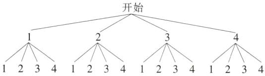 所有等可能的结果为(1,1),(1,2),(1,3),(1,4),(2,1),(2,2),(2,3),(2,4),(3,1),(3,2),(3,3),(3,4),(4,1),(4,2),(4,3),(4,4),共16种.