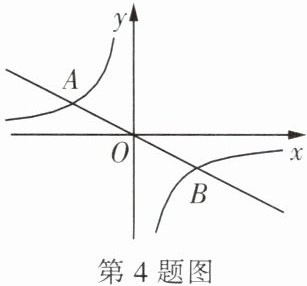 4. 如图,直线$y = -\frac{1}{2}x与双曲线y = \frac{k}{x}相交于A$,$B$两点,点$A的坐标为(-2, 1)$,则点$B$的坐标为