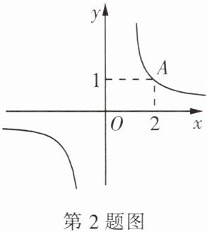 2. 如图,反比例函数$y = \frac{k}{x}的图象经过点A(2, 1)$,若$y \leq 1$,则$x$的取值范围为(