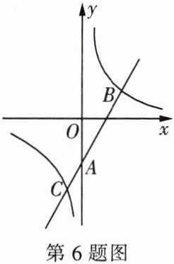 6. 如图,在平面直角坐标系中,一次函数$y_1 = ax + b(a \neq 0)的图象与y轴相交于点A$,与反比例函数$y_2 = \frac{k}{x}(k \neq 0)的图象相交于点B(3, 2)$,$C(-1, n)$。