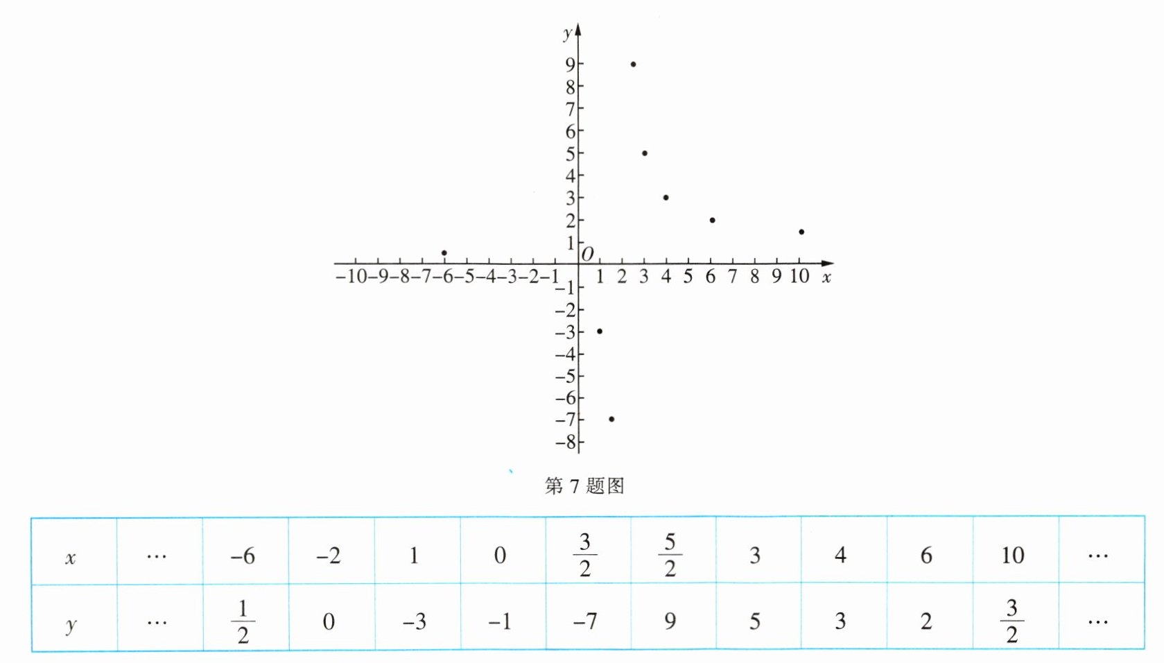 7. 小明在学习过程中遇到了一个函数$y = \frac{4}{x - 2} + 1$,小明根据学习反比例函数$y = \frac{4}{x}$的经验,对函数$y = \frac{4}{x - 2} + 1$的图象和性质进行了探究。