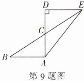 9. 如图, 已知AE= √{13}, AC= 1, ∠D= 90°, △DEC与△ABC关于点C成中心对称, 则AB的长是 (