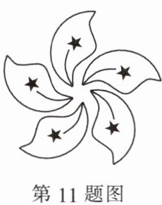 11. 如图, 将香港特别行政区标志紫荆花图案绕中心旋转, 当此图案第一次与自身重合时, 其旋转角的大小为