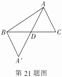 21. (8分)如图, 在△ABC中, AD是BC边上的中线, △A'BD与△ACD关于点D成中心对称.