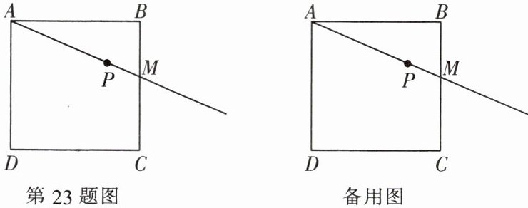 23. (12分)在正方形ABCD中, M是BC边上一点, 且点M不与点B, C重合, 点P在射线AM上, 将线段AP绕点A顺时针旋转90°得到线段AQ, 连接BP, DQ.