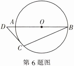 6. 如图,AB 是⊙O 的直径,D 是 BA 延长线上一点,DC 与⊙O 相切于点 C,连接 BC,∠ABC = 25°,则∠BDC 的度数为 (