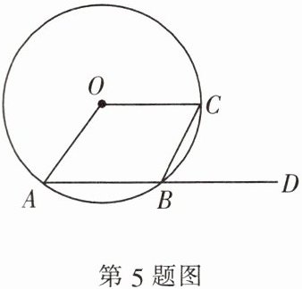 5. 如图,AB,BC 为⊙O 的两条弦,连接 OA,OC,点 D 为 AB 的延长线上一点,若∠CBD = 62°,则∠AOC 的度数为 (