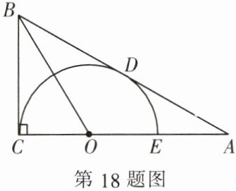 18. (9 分) 如图,在 Rt△ABC 中,∠ACB = 90°,点 O 在边 AC 上,以点 O 为圆心、OC 为半径的半圆与斜边 AB 相切于点 D,交 OA 于点 E,连接 OB.