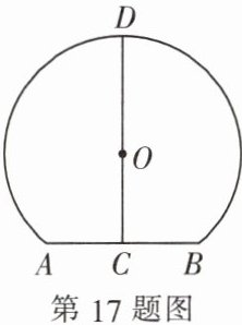 17. (8 分) 如图是一条隧道的横截面,它的形状是以点 O 为圆心的圆的一部分,如果 C 是⊙O 中弦 AB 的中点,CD 经过圆心 O 交⊙O 于点 D,并且 AB = 2,CD = 5. 求⊙O 的半径长.