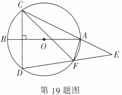 19. (8 分) 如图,AB 是⊙O 的直径,弦 CD⊥AB,E 是 CA 延长线上的一点,连接 DE 交⊙O 于点 F,连接 AF,CF.
