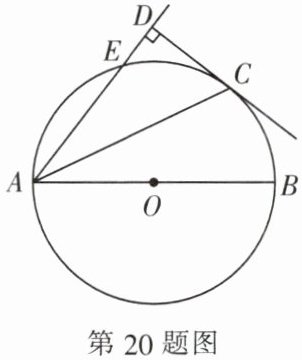 20. (8 分) 如图,AB 是⊙O 的直径,C 为⊙O 上一点,AD 和过点 C 的切线互相垂直,垂足为 D,AD 交⊙O 于点 E,AE = 3,CD = 2.