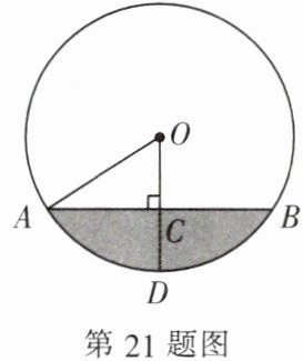 21. (8 分) 如图,水平放置的圆柱形排水管道的截面所在圆的半径 OA = 1 m,AB 表示水面的位置. 过点 O 作 OD⊥AB,垂足为 C,交⊙O 于点 D,水面高 CD = 0.5 m. 求截面上有水部分的面积.