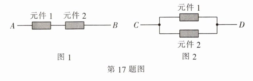 17. (8 分) 已知电流在一定时间段内正常通过电子元件的概率是$\frac{1}{2}$. (提示:在一次实验中,每个电子元件的状态有两种可能:通电、断开,并且这两种状态的可能性相等)