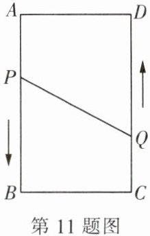 11. 如图所示,$ A $,$ B $,$ C $,$ D $ 是矩形的四个顶点,$ AB = 16 $ cm,$ AD = 6 $ cm,动点 $ P $,$ Q $ 分别从点 $ A $,$ C $ 同时出发,点 $ P $ 以 3 cm/s 的速度向点 $ B $ 移动,一直到达点 $ B $ 为止,点 $ Q $ 以 2 cm/s 的速度向点 $ D $ 移动.