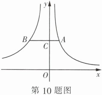 10. 已知反比例函数 $ y = \frac{3}{x} $ 和 $ y = \frac{k}{x} $ 的部分图象如图所示, $ C $ 是 $ y $ 轴正半轴上一点, 过点 $ C $ 作 $ AB // x $ 轴, 分别交两个图象于点 $ A $, $ B $. 若 $ CB = 2CA $, 则 $ k $ 的值为 (